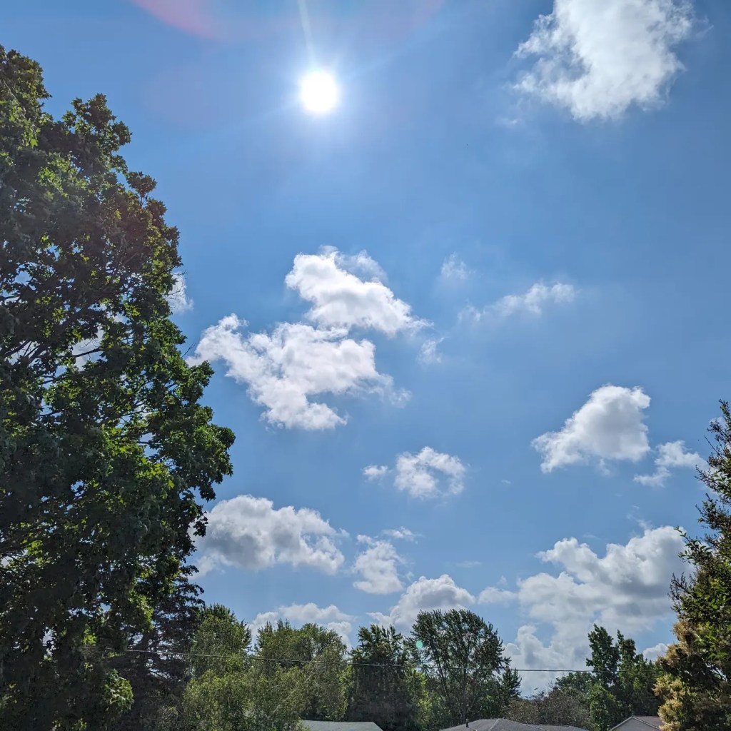 Summer. June 27th, 2023. Blue skies in upstate Western New York. Temps are in the seventies. Share this: Click to share on X (Opens in new window) X Click to share on Facebook (Opens in new window) Facebook Like Loading... Related