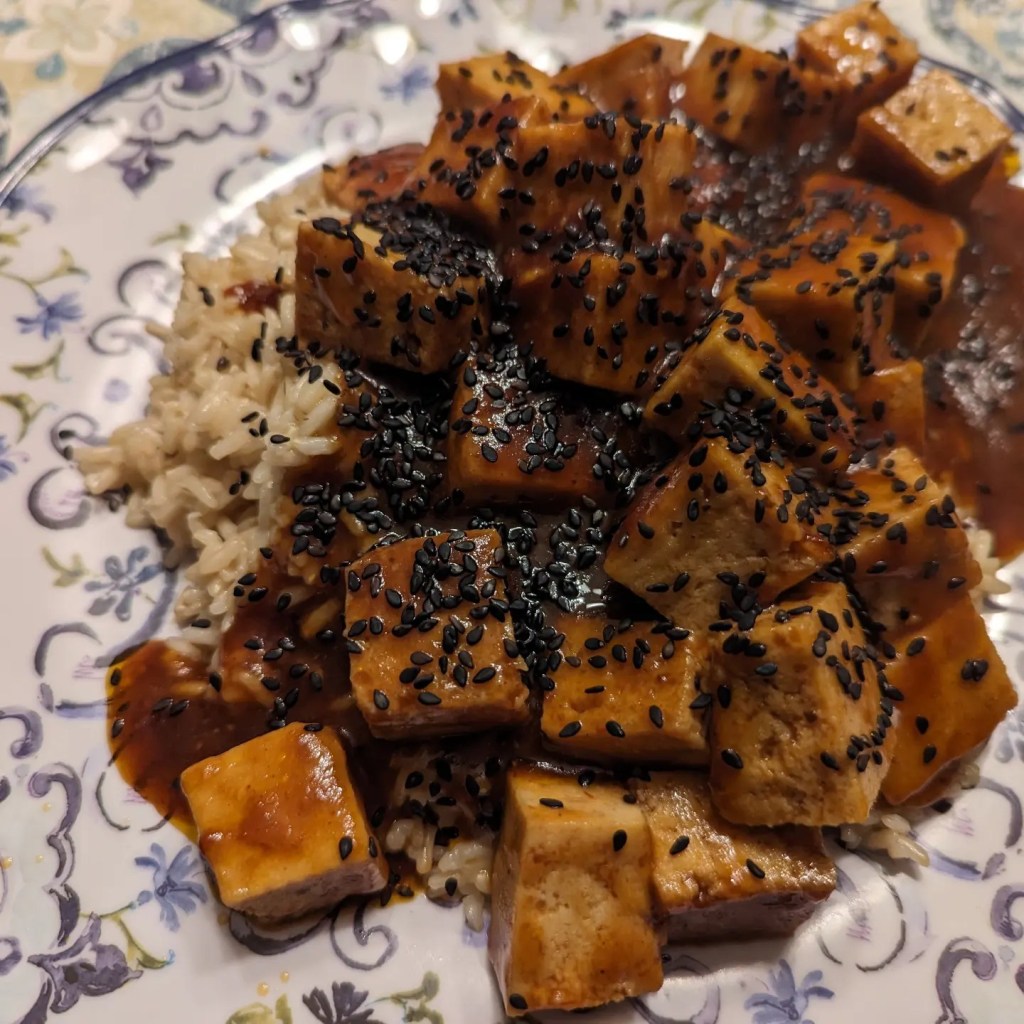 Dinner. June 30th, 2023. Barbecue tofu and brown rice. Share this: Click to share on X (Opens in new window) X Click to share on Facebook (Opens in new window) Facebook Like Loading... Related