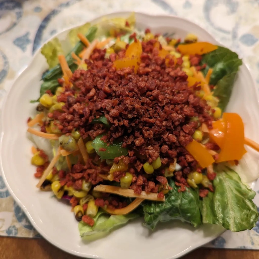 Dinner. July 13th, 2023. Salad. Carrots, peppers, Violife cheese, and bacos. Share this: Click to share on X (Opens in new window) X Click to share on Facebook (Opens in new window) Facebook Like Loading... Related