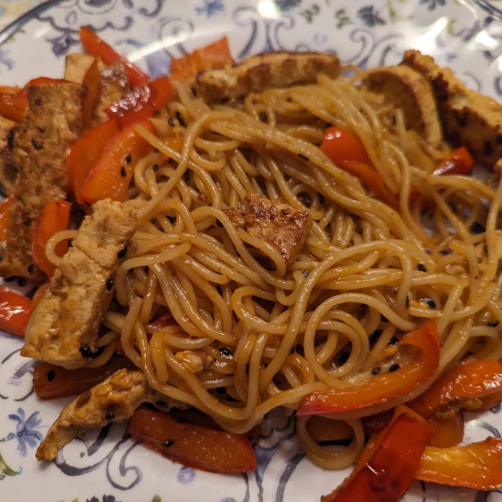 Dinner. July 20th, 2023. Gardein chicken, peppers, and leftover pasta. Share this: Click to share on X (Opens in new window) X Click to share on Facebook (Opens in new window) Facebook Like Loading... Related