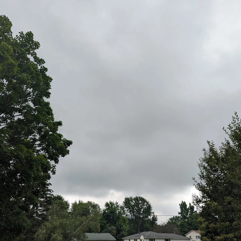 Grey skies in upstate Western New York. Thunderstorm came after I took this. Temps are in the seventies.