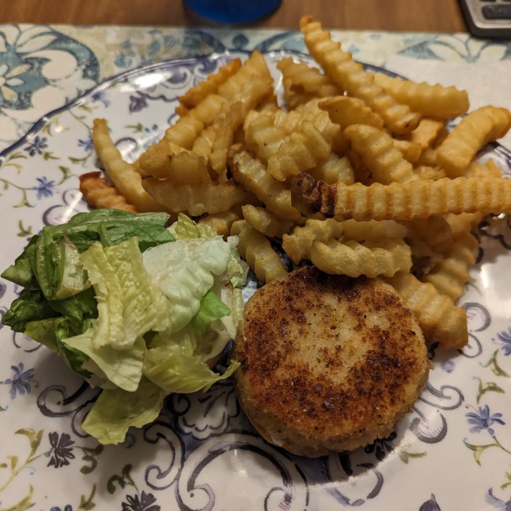 Dinner. August 9th, 2023. Gardein chicken sliders and fries. Share this: Click to share on X (Opens in new window) X Click to share on Facebook (Opens in new window) Facebook Like Loading... Related