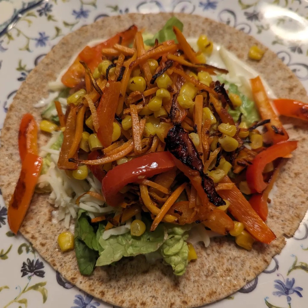 Dinner. August 11th, 2023. Veggie burrito. Corn, carrots, peppers, Violife cheese, and salsa. Share this: Click to share on X (Opens in new window) X Click to share on Facebook (Opens in new window) Facebook Like Loading... Related