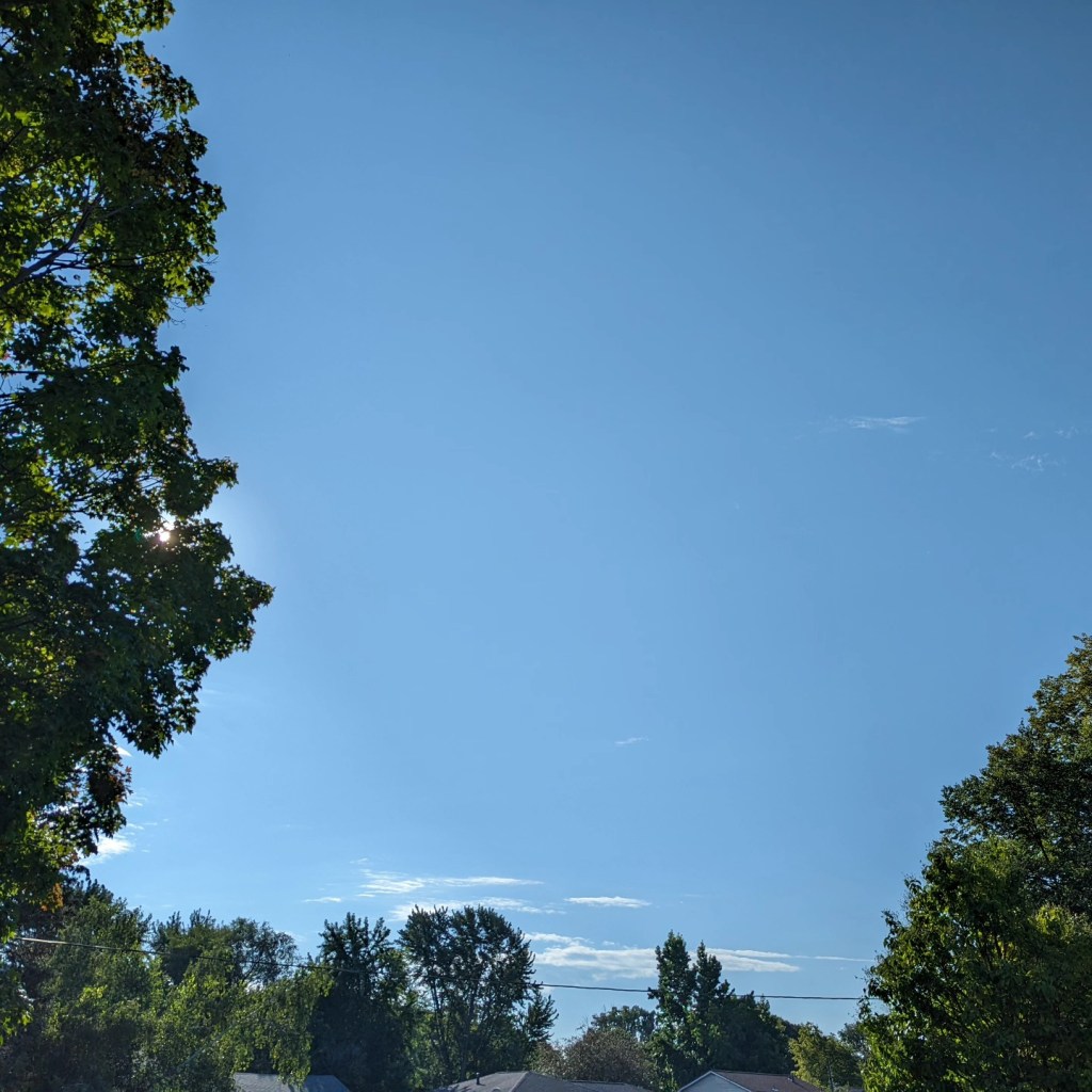 Blue skies in upstate Western New York. Temps are in the sixties.