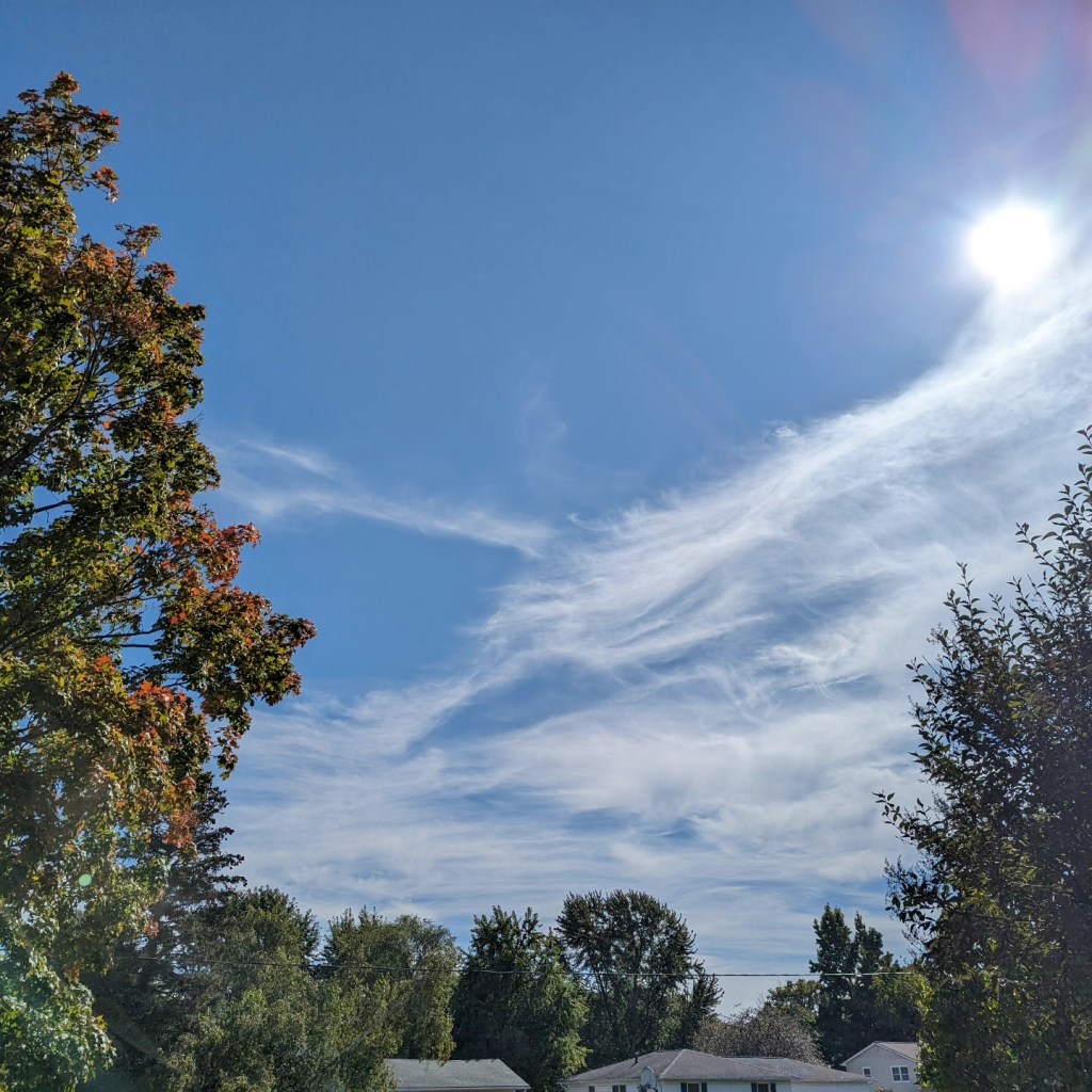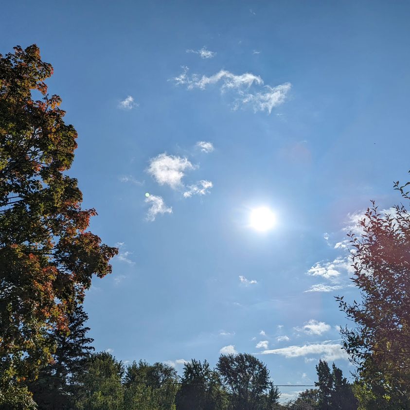 Blue skies in upstate Western New York. Temps are in the sixties.