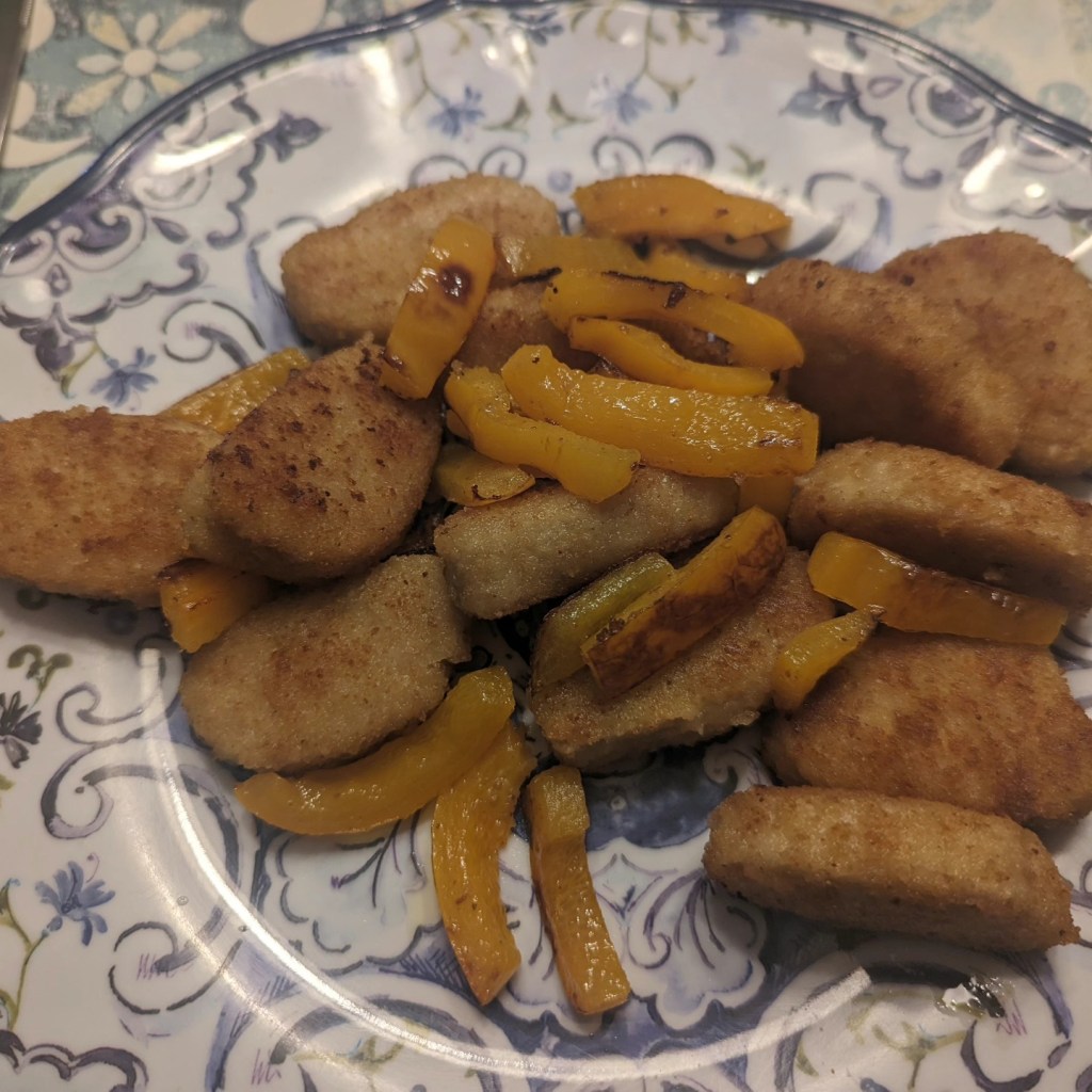 Dinner. September 11th, 2023. Whole Foods chicken nuggies and peppers. Share this: Click to share on X (Opens in new window) X Click to share on Facebook (Opens in new window) Facebook Like Loading... Related