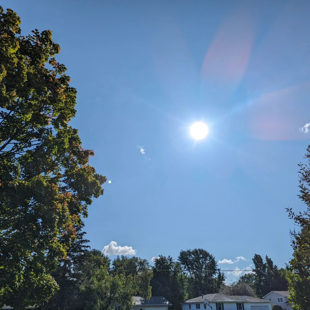 Blue skies in upstate Western New York. Temps are in the sixties.