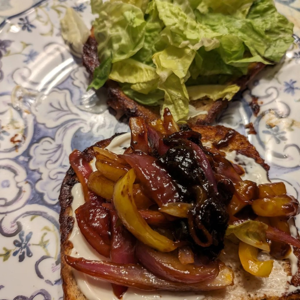 Dinner. November 12th, 2023. Barbecue peppers and onions sandwich. Share this: Click to share on X (Opens in new window) X Click to share on Facebook (Opens in new window) Facebook Like Loading... Related