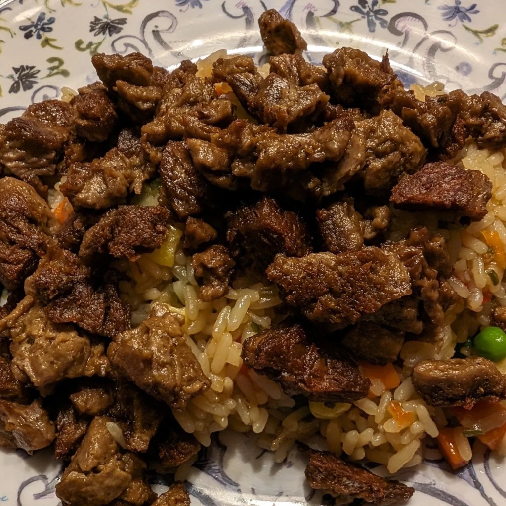 Dinner. December 3rd, 2023. Whole Foods veggie rice and Beyond Meat steak. Share this: Click to share on X (Opens in new window) X Click to share on Facebook (Opens in new window) Facebook Like Loading... Related