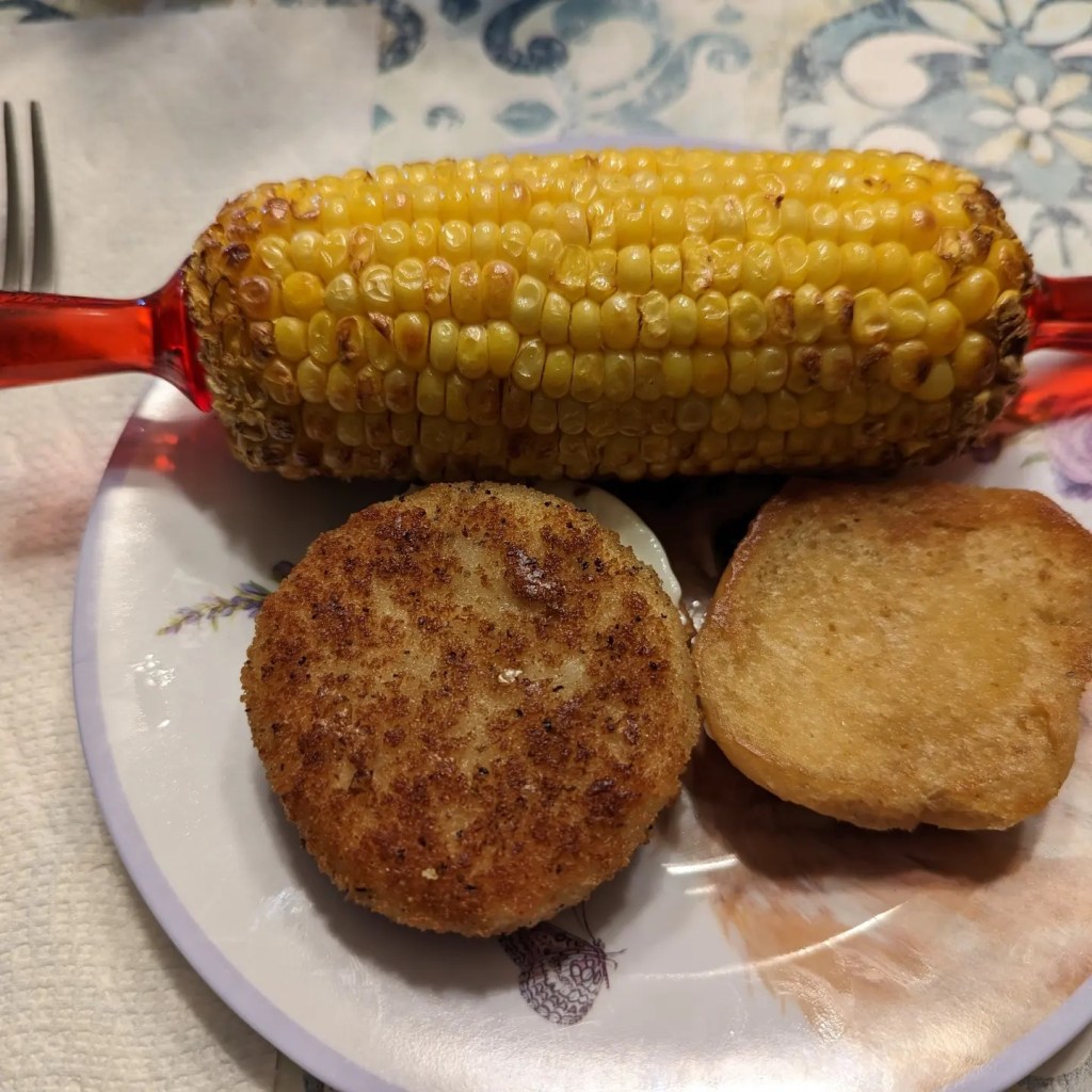 Gardein chicken slider and corn.