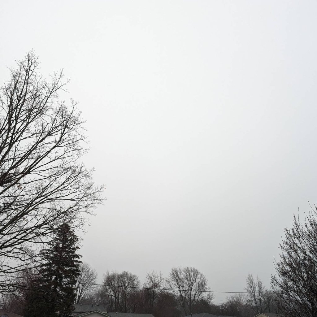 Grey skies in upstate Western New York. Temps are in the forties. It’s been raining for eighteen hours.