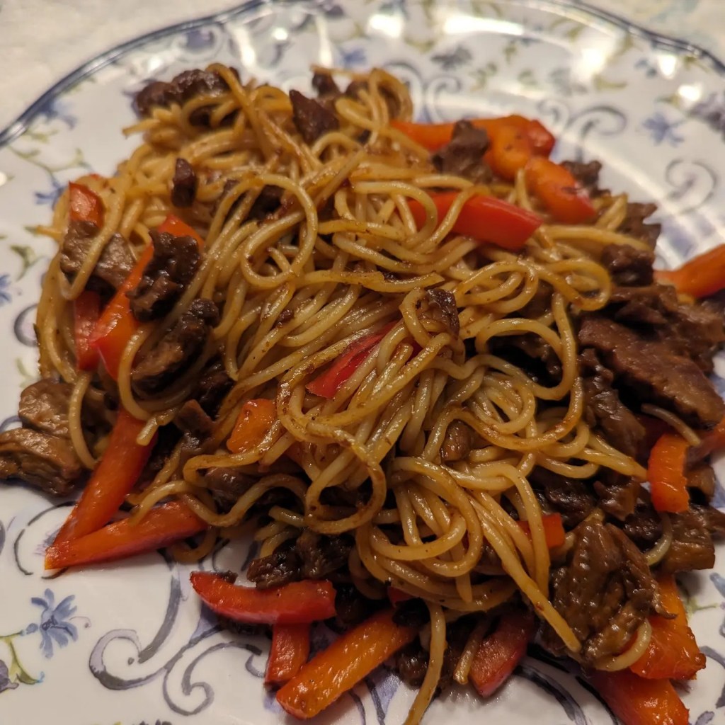 Burritos. Corn, onion, peppers, and Beyond Meat steak.